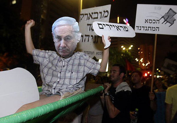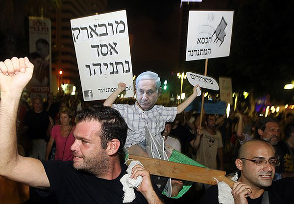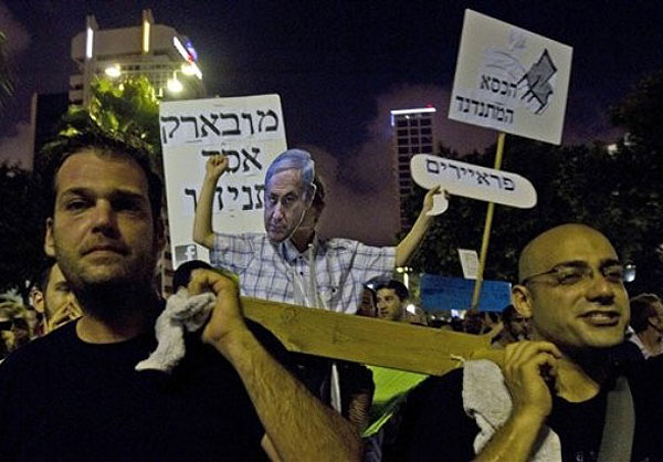 تظاهركنندگان در عين حال كه عليه سياست هاي نتانياهو و نبود عدالت اجتماعي در سرزمين هاي اشغالي فرياد مي زدند، به صورت نمادين تابوت نتانياهو را نيز تشييع كردند.