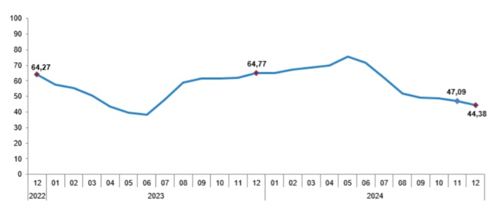 نرخ تورم ترکیه در سال ۲۰۲۴ میلادی در حالی به ۴۴ درصد رسید که برخی از صاحب نظران اقتصادی ترکیه پیش بینی می کنند که این نرخ برای سال ۲۰۲۵ به پایین تر از ۳۰ درصد برسد؛ کاهشی که می تواند برای دولت اردوغان و سیاست های اقتصادی اش مزیت بالایی داشته باشد.