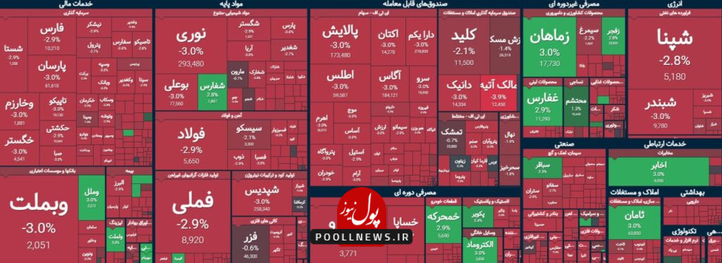 تا این لحظه 93 درصد از نمادهای معاملاتی معادل 722 شرکت در محدوده منفی و 56 شرکت معادل 7 درصد در بازه مثبت قرار دارند.