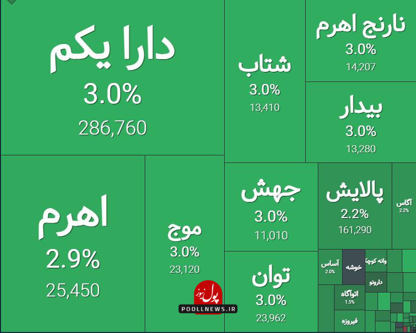 به گزارش پول نیوز ، در جریان معاملات روز جاری بورس تهران تا این لحظه، نماگر اصلی بیش از ۱۵ هزار واحد افزایش پیدا کرد. در این میان ۶۵ درصد از نمادها در محدوده سبز تابلو هستند و ۳۵ درصد نمادها در مدار منفی قرار دارند.