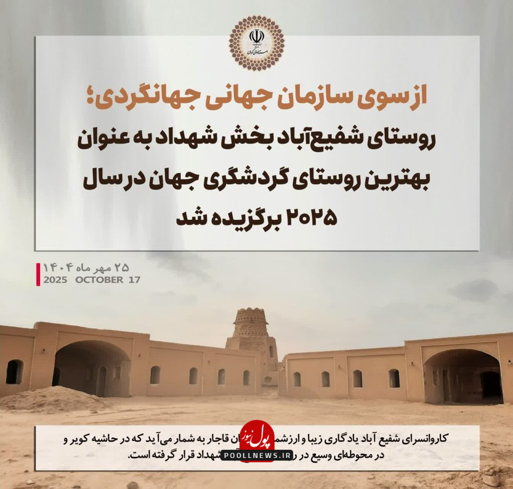 به گزارش پول نیوز ، روستای شفیعآباد بخش شهداد از توابع شهرستان کرمان به عنوان بهترین روستای گردشگری جهان در سال ۲۰۲۵ برگزیده شد.