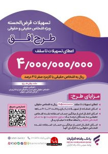 سقف تسهیلات این طرح برای اشخاص حقیقی و شرکتها به ترتیب 400 و 750 میلیون تومان با بازپرداخت 6 الی 60 ماهه است.