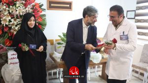 شایان ذکر است در پایان این دیدار دکتر عتباتی با حضور در بخشهای جراحی بیمارستان و با عرض خداقوت به پرستاران و کادر درمان با تقدیم شاخه گلی از زحمات آنها تشکر وقدردانی نمود.