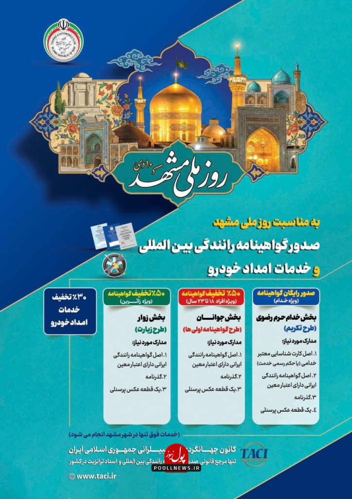 در قالب این طرح، که از سوی کارگزاران کانون جهانگردی و اتومبیلرانی در شهر مشهد اجرا میشود، خادمان آستان قدس رضوی میتوانند گواهینامه رانندگی بینالمللی را به صورت رایگان دریافت کنند و جوانان ۱۸ تا 23 سال که فاقد سابقه دریافت گواهینامه رانندگی بینالمللی هستند نیز از تخفیف 50 درصدی بهرهمند شوند.همچنین مسافران و زائران نیز میتوانند گواهینامه رانندگی بینالمللی را به صورت نیم بها دریافت کنند.