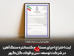بتازگی شرکت توسعه آهن و فولاد گلگهر موفق به ثبت اختراع جدیدی با عنوان «طراحی فرایند و ساخت دستگاه احیای مستقیم کنسانتره سنگآهن با استفاده از گازهای احیاکننده» شد که پس از طی مراحل ارزیابیهای فنی، در سازمان ثبت اسناد و املاک کشور به ثبت رسیده است.