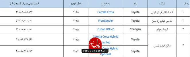 خودروهای عرضه‌شده در این مرحله شامل محصولات متنوعی از برندهای معتبر جهانی است که مشخصات آنها به شرح زیر اعلام شده است: