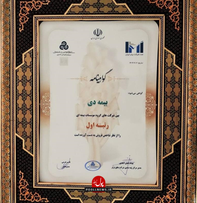 در این همایش که با حضور محمدرضا عارف، معاون اول رئیس جمهور و سید محمد اتابک، وزیر صنعت ، معدن و تجارت کشور برگزار شد شرکت بیمه دی ، توانست رتبه اول را بین مؤسسات بیمه ای کشور کسب کند .