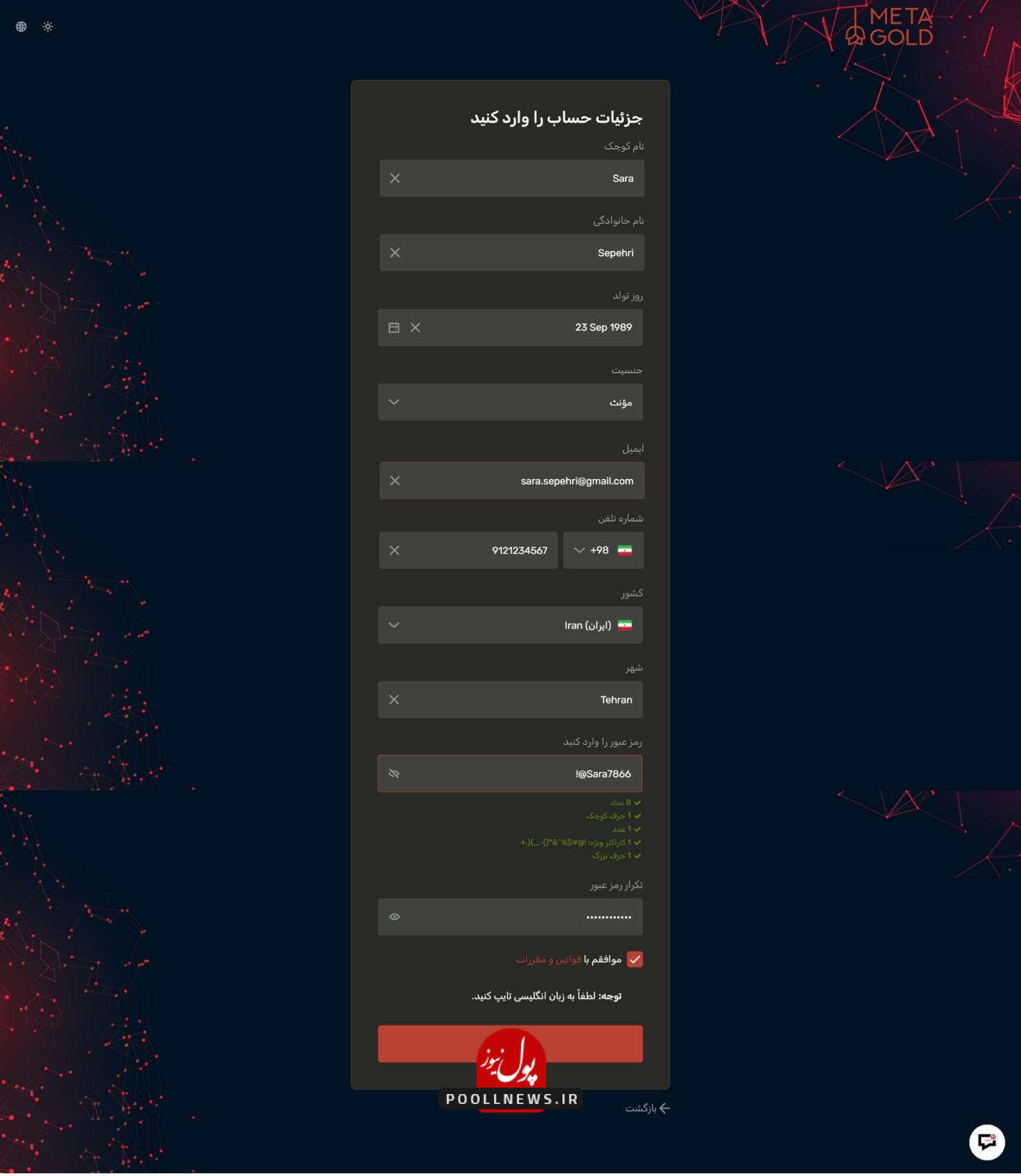 - ایمیل: از ایمیلی استفاده کنید که به آن دسترسی دارید، چون ایمیل تایید ثبتنام به آن ارسال میشود.