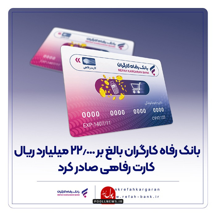 لازم به ذکر است، کارت رفاهی بانک رفاه کارگران اواخر اسفند ماه سال گذشته با حضور مقامهای ارشد اقتصادی کشور رونمایی شد و در ابتدا این کارت برای هر متقاضی تا سقف سه میلیارد ریال صادر میشد که در ادامه با پیگیریهای این بانک و هماهنگیهای صورت گرفته با بانک مرکزی ج.ا.ا مبلغ آن به 5 میلیارد ریال افزایش یافت.